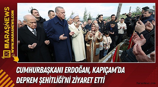 Cumhurbaşkanı Recep Tayyip Erdoğan, 6 Şubat depremlerinin 1. yıl dönümünde bir dizi ziyarette bulunmak ve deprem konutlarının kura çekiliş törenine katılmak için Kahramanmaraş’a geldi. Cumhurbaşkanı Erdoğan, ilk olarak Kapıçam Şehir Mezarlığı’nı ziyaret etti. Milliyetçi Hareket Partisi Genel Başkanı Dr. Devlet Bahçeli’nin yanı sıra; TBMM Başkanı Numan Kurtulmuş, Bakanlar, Diyanet İşleri Başkanı Ali Erbaş, Vali Mükerrem Ünlüer, TBMM Tarım, Orman ve Köyişleri Komisyonu Başkanı Prof. Dr. Vahit Kirişci, milletvekilleri, Büyükşehir Belediye Başkanı Hayrettin Güngör ve şehir protokolünün de yer aldığı ziyarette Cumhurbaşkanı Recep Tayyip Erdoğan, 6 Şubat depremlerinde ahirete irtihal eden vatandaşların yakınlarıyla da bir araya gelerek baş sağlığı dileklerini iletti.