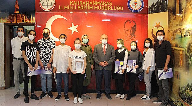 Dereceye giren öğrencilerimiz ile birlikte proje dâhilinde katılımcı öğrencilere rehberlik eden Kahramanmaraş Güzel Sanatlar Liseleri öğrencileri ile öğretmenleri ve katılımcı öğrencilerin öğretmenlerine Bakanlığımızca hazırlanan teşekkür belgeleri verildi.