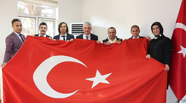 Şoför Nail KÜÇÜK, bayrağı İl Sağlık Müdürü Uzm. Dr. Ali Nuri ÖKSÜZ’e teslim