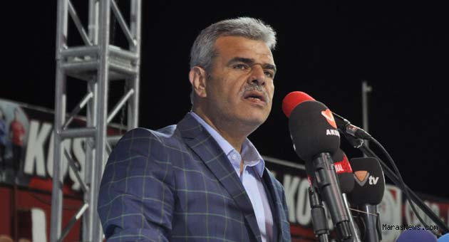 İftar yemeğinde, ev sahibi olarak açılış konuşmasını yapan AK Parti Kahramanmaraş İl Başkanı Ahmet Özdemir, statta verilen iftar yemeğinin bir anlamı olduğunu belirterek, şunları söyledi: “2003 yılında o zaman Kahramanmaraş İl Başkanı olan Saygıdeğer Başbakan yardımcımız, yine bu stadyumda Türkiye'de ilk defa bir İl Kongresi gerçekleştirmişti. Biz de o günün anlamına, bir anlamı olsun istedik ve bu iftar programımızı yine aynı mekânda gerçekleştirdik. Katılımcılara ve partiye bu zamana kadar emeği geçen herkese teşekkür eden Özdemir, Cumhurbaşkanı Recep Tayyip Erdoğan’ın yol arkadaşı Başbakan Yardımcısı Veysi Kaynak’ı kürsüye davet etti. Alkış tufanları arasında kürsüye gelen Kaynak, konuşmasına şükürle başladı. Başbakan Yardımcısı Kaynak, şöyle konuştu: “Allah'a hamdolsun. Bizler, çok huzurlu bir Ramazan'a girdik. Ama bizim huzurlu olmamız, bizim barış içinde olmamız, bizim esenlik içerisinde olmamız her şeyin hallolduğu anlamına gelmiyor. Bir yandan Güneydoğu'da, Doğu’da terörle mücadele devam ediyor. Bir yandan dünyanın çok çeşitli yerlerinde mazlum milletler, mağdur milletler; bir yudum su, bir kırık ekmek için inanın sizlere Türkiye'ye ve Türkiye'nin liderine, dünya mazlumlarının lideri Recep Tayyip Erdoğan'a bakıyor. Biz burada huzur içerisinde iftarımızı yaparken hemen 80 kilometre güneyimizde Suriye'de, bir zalim tarafından katliama tabi tutulan masum Suriye halkı, 600 bini bombalarla katledilmiş; hem de varil bombalarıyla, en vahşi bombalarla… İnsanların, önemli bir kısmı yer değiştirmek zorunda kalmış. Beş milyonu aşkın insan da dünyanın çeşitli yerlerine dağılmış vaziyette. Şükürler olsun ki biz, bunların yüzde 60’ına ev sahipliği yapıyoruz. Aramızda 2 milyon 750 bin Suriyeli kardeşimiz var. Bizim milletimiz, Suriyeli kardeşlerine gerçekten insanlığın gereği, gerçekten Müslümanlığın gereği aşını paylaşarak, evini paylaşarak, işini paylaşarak destek oluyor.”