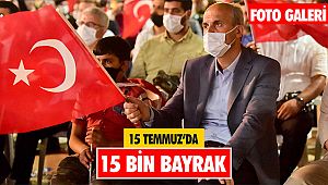 kent meydanında kurulan alanda 15 bin adet Türk bayrağı dağıttıklarını