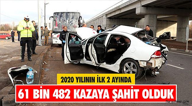 2020 yılının ilk 2 ayında 61 bin 482 trafik kazası olduğu saptandı. 2 ayda olan