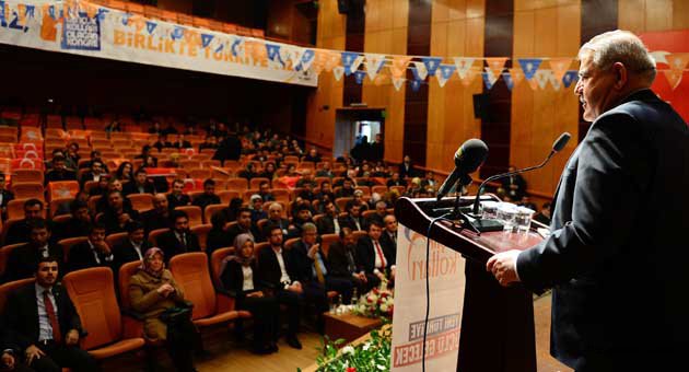 “Yeni Türkiye vizyonunda, konseptinde; büyük ustamız Cumhurbaşkanımız Recep Tayyip Erdoğan’ın sevk ve idaresinde, koordinatörlüğünde, bilge Başbakanımız Prof. Dr. Ahmet Davutoğlu’nun yönetiminde AK Partili yönetimler, kadrolar inşallah Türkiye’mizi dünya liginin ön sıralarına taşıyacaklardır. Bundan en ufak bir şüphemiz yok. AK Partili yerel yöneticiler belediyelerde, işte zaten bu işin ustası Sayın cumhurbaşkanımız, uluslararası ölçekte ülkemizi en yaşanılabilir yerler sıralamasına taşıyacaklardır. Bu noktada bilgileri de, kabiliyetleri de donanımları da vardır. Şu da bir gerçek ki AK Partili kadrolar bir görevi, bir sorumluluğu yüklendikleri zaman o görevi onların elinden kimse alamaz ve layıkıyla yerine getirirler. İşte bu bağlamda bugüne kadar hizmet eden gençlik teşkilatımızın büyük emekleri var. Bugün görevi teslim alacak arkadaşlarımız da ben inanıyorum ki o görevi, o misyonu çok daha ileri noktalara taşıyacaklardır. Bizler de her zaman kendilerinin yanında olacağız. Bugünkü kongremizin hayırlı olmasını cenabı haktan niyaz ediyoruz. Bizleri onurlandıran tüm misafirlerimize ve kardeşlerime, eskimez dostlarımıza yürekten teşekkür ediyor, hepinize saygılar sunuyorum.”