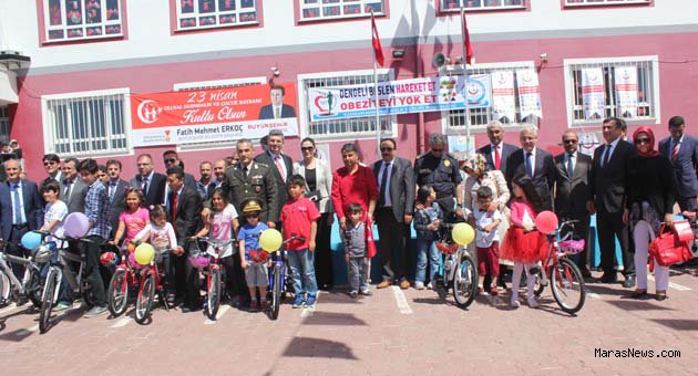Öğrencilerin, renkli gösterileriyle devam eden programda, her ortaokuldan ders ve davranış olarak örnek olabilecek okul idaresince seçilen 1 öğrenciye, yatılı bölge ortaokullarına okullarda kullanılmak üzere 10’ar adet, toplamda 890 adet bisiklet dağıtıldı. Bisiklet dağıtım töreninin ardından Kahramanmaraş Halk Sağlığı Müdürlüğü’ne tahsis edilen Sağlıklı Yaşam Aracı’nın tanıtımı yapılarak; çocuklara, çeşitli hediyeler verildi. Törene; Kahramanmaraş Valisi Mustafa Hakan Güvençer, Vali Yardımcısı Erkan Bulgan, Kahramanmaraş Cumhuriyet Başsavcısı Mustafa Yabanoğlu, Garnizon Komutanı Kurmay Albay Uzay Şahin, Dulkadiroğlu Kaymakamı Mehmet Türköz, Onikişubat Kaymakamı Mustafa Anteplioğlu, Dulkadiroğlu Belediye Başkanı Necati Okay, Onikişubat Belediye Başkanı Hanefi Mahçicek, İl Sağlık Müdürü Dr. Murat Coşkun, Halk Sağlığı Müdürü Dr. Ahmet Yener, Kamu Hastaneler Birliği Genel Sekreteri Dr. Semih Yancar, İl Milli Eğitim Müdürü Mehmet Emin Akkurt ve çok sayıda vatandaş katıldı.