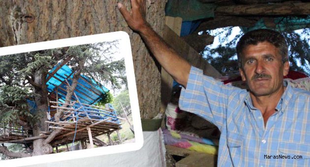Kahramanmaraş’a 50 kilometre uzaklıkta bulunan bin 200 rakım yüksekliğinde olan Gölpınar Mahallesinde ikamet eden 9 çocuk babası Zekir Kurt, 500 yıllık Kamalak ağacına inşa ettiği evinde misafirlerini ağırlıyor.