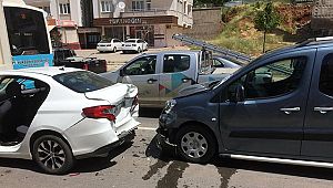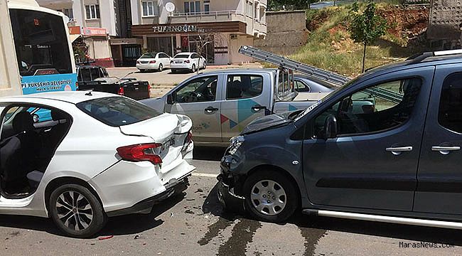 zincirleme trafik kazasında, bir kamyon bir otomobil ve bir panelvan birbirine