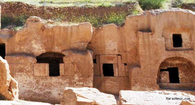 Yukarı Pazarcık bölgesindeki mağaralarda, yaklaşık 10 metre derinlikteki su sarnıcı ve kaya mezarlar bulunuyor. Roma döneminde zengin, soylu ve rütbeli askerler için kayaların içi oyularak yapılan mezarlar, farklı bölümlerden oluşuyor.