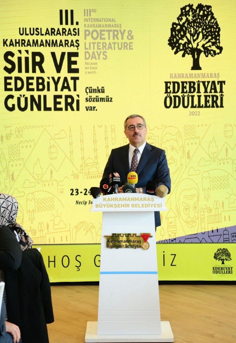 Büyükşehir Belediye Başkanı Hayrettin Güngör, burada yaptığı konuşmada, “Anadolu’muzun her şehrinin ayrı bir hikâyesi, kadim bir tarihi ve öne çıkan değerleri var. Kahramanmaraş’ımızın da öne çıkan değerlerinden bir tanesi şiir ve edebiyatın başkenti olması. Çünkü bizim söyleyecek sözümüz var. Bu kadim topraklar çok büyük şair, ozan ve yazarlar yetiştirmiştir. Gaziantep’in gastronomi alanında UNESCO Yaratıcı Şehirler Ağına dâhil olmasının ardından Sayın Cumhurbaşkanımız, Kahramanmaraş’ımızın da uluslararası arenada şiir ve edebiyat kimliğiyle yer alması gerektiğini ifade etmişti. Şiir ve edebiyat alanında var olan değerimizi hak ettiği yere taşımak için gayret ediyoruz. Bunun için Uluslararası Şiir ve Edebiyat Günleri etkinliğimizin bu yıl 3’üncüsü gerçekleştiriyoruz” ifadelerini kullandı.