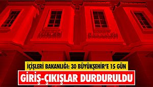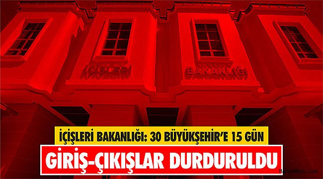 itibaren 30 büyükşehir ile Zonguldak'a giriş ve çıkışlar 15 gün süreyle