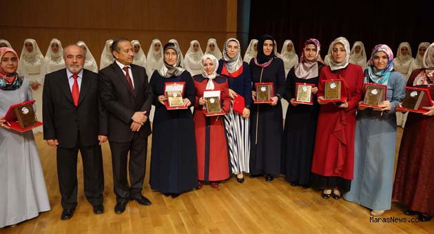 Programda Kurs hocalarına ve yöneticilere başarı plaketleri ile çeşitli hediyeler, Milletvekili Nursel Reyhanlıoğlu, Vali Mustafa Hakan Güvençer’ in eşi Fatma Dilek Güvençer, Onikişubat İlçe Belediye Başkan Vekili Havva Saygaz, Onikişubat İlçe Müftüsü Abdullah Demir, Dulkadiroğlu İlçe Müftüsü İsmail Günay, Şenay Gök ve Nazmiye Temizel, tarafından takdim edildi.