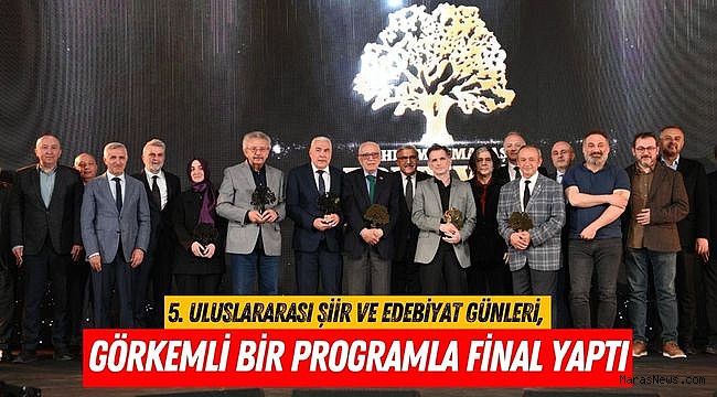 Kahramanmaraş Büyükşehir Belediyesi tarafından bu yıl 5’incisi düzenlenen Uluslararası Kahramanmaraş Şiir ve Edebiyat Günleri, binlerce edebiyatseverin katılımıyla dolu dolu geçen 9 günün ardından görkemli bir final programıyla sona erdi. 19 Nisan’da başlayan ve şehri adeta kültür ve sanatla buluşturan etkinlikler dizisi, Mehmet Akif Ersoy Kültür Merkezi’nde düzenlenen kapanış programı ile taçlandırıldı. Sunuculuğunu ünlü sanatçı Okan Bayülgen’in üstlendiği geceye; Büyükşehir Belediye Başkanı Fırat Görgel’in yanı sıra Kültür ve Turizm Bakan Yardımcısı Gökhan Yazgı, Vali Mükerrem Ünlüer, AK Parti Kültür ve Sanat Politikalarından Sorumlu Genel Başkan Yardımcısı Hüseyin Yayman, şehir protokolü, çok sayıda şair, yazar, fikir insanı ve yüzlerce kültür sanat tutkunu katıldı.