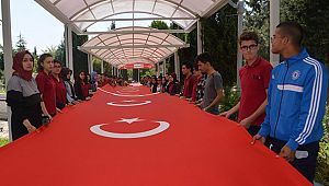 Kahramanmaraş Şehitliğine kadar olan güzergâhta 100 Metrelik Türk Bayrağımız ve