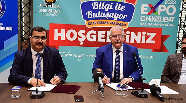Kahramanmaraş Bilgiyle Buluşuyor projesi protokol imzaları Başkan Mahçiçek ve Milli Eğitim Müdürü Yusuf Kahraman tarafından atıldı, çekilen fotoğraflar sonrası program noktalandı.