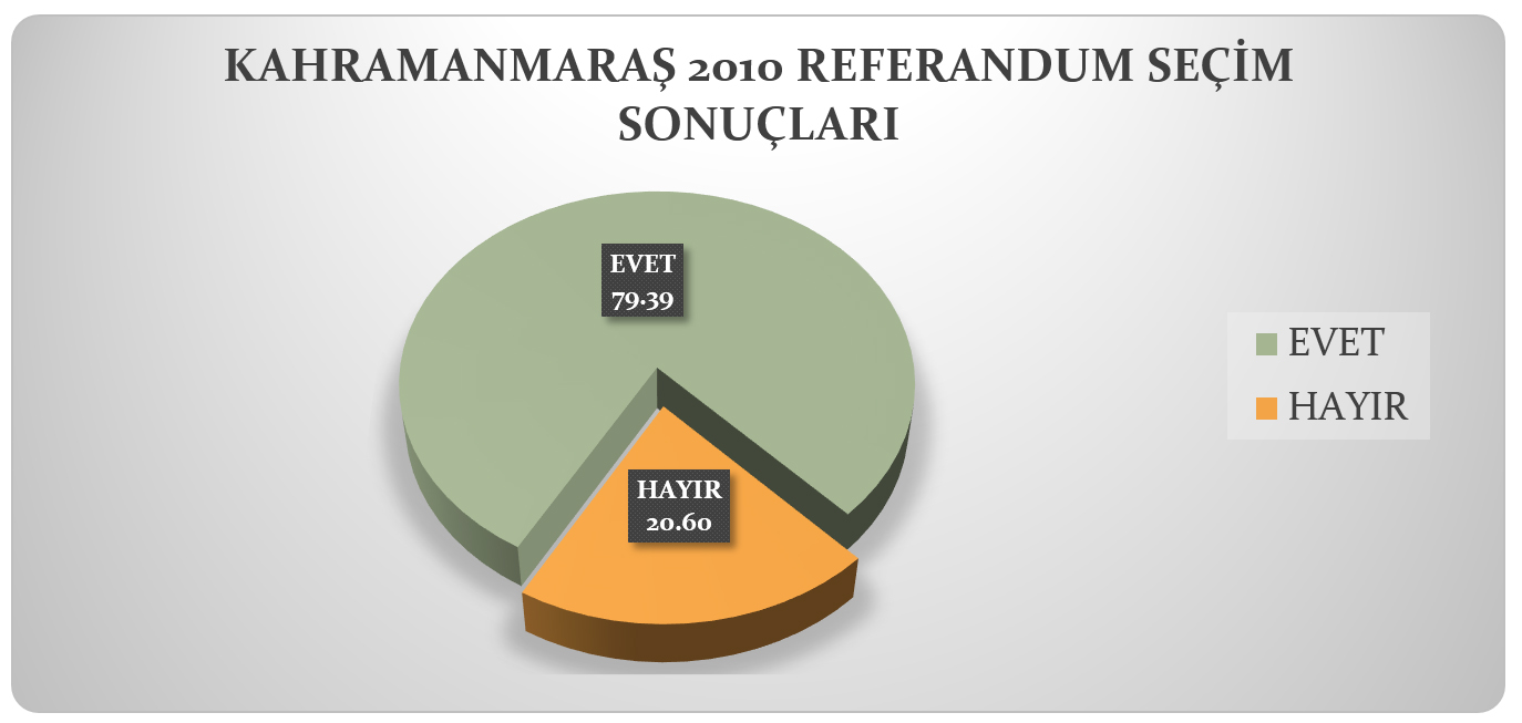 Türkiye ortalaması yüzde 58 ‘evet’ yüzde ‘42’ hayır oldu. Kahramanmaraş 2010
