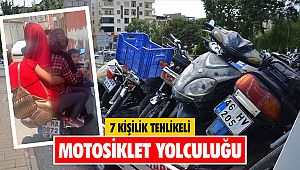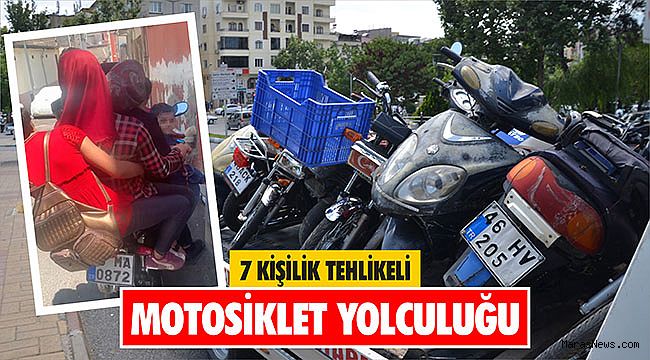 bir motosiklette 7 kişinin yolculuk yaptığını fark etti.