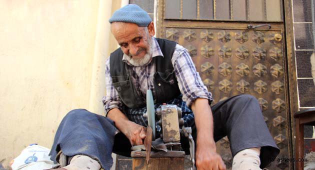 Hatay’da 83 yaşındaki bir vatandaş, ilçe ilçe gezip bıçak bileyerek, kazandığı parayla iki çocuğunu üniversitede okutuyor.