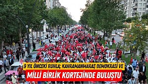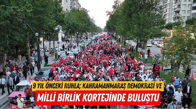 Kahramanmaraş, 15 Temmuz hain darbe girişiminin 9. yılında bir kez daha milli iradeye, demokrasiye ve birlik ruhuna sahip çıktığını gösterdi. 15 Temmuz Demokrasi ve Milli Birlik Günü kapsamında, şehir protokolü ve vatandaşların yoğun katılımıyla “Demokrasi ve Milli Birlik Korteji” düzenlendi. Vali Mükerrem Ünlüer, AK Parti Kahramanmaraş Milletvekili Ömer Oruç Bilal Debgici, Büyükşehir Belediye Başkanı Fırat Görgel, kaymakamlar, belediye başkanları, siyasi partilerin ve sivil toplum kuruluşlarının temsilcileri ile yüzlerce vatandaş; mehteran takımının marşları eşliğinde, ellerinde Türk Bayrakları ve meşalelerle Onikişubat Parkı’ndan Necip Fazıl Kısakürek Kültür Merkezi’ne kadar yürüdü. Kortej yürüyüşü boyunca açılan dev Türk Bayrağı, şehrin dört bir yanına yayılan vatan sevgisinin ve milli birlik ruhunun güçlü bir simgesi oldu. Marşlar, sloganlar ve tek yürek olan kalabalıkla birlikte şehir, o karanlık geceye karşı verdiği direnişi bir kez daha hatırlattı.