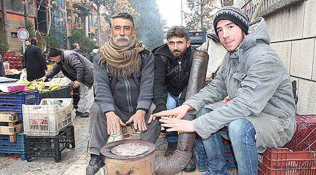 düştüğü kuru soğuklarda ateş yakarak ısınmaya çalışan esnaflar, soğuklardan hem