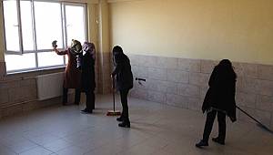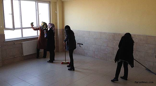 ilköğretim okulunda yerleştirme, temizlik çalışmaları ve yerleştirme yaptılar”
