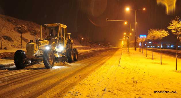 Afşin Belediyesi, aralıklarla devam eden kar yağışının ulaşımı olumsuz etkilememesi için ana arterler ve tüm caddeler ile sokaklarda kar küreme ve yol tuzlama çalışması yürüttü.