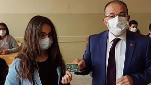 Temsili olarak 1 sınıfta öğrencilere dağıtılan kartlar, diğer öğrencilere ulaştırılmak üzere okul idarecilerine teslim edildi.
