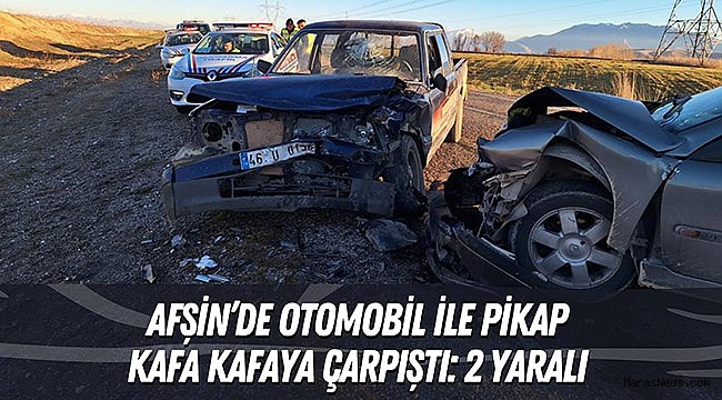 Edinilen bilgiye göre, ilçeye bağlı Çoğulhan Mahallesi mevkiinde Y.K (43) idaresindeki 46 ED 559 plakalı otomobil, karşı yönden gelen H.M.Y (64) yönetimindeki 46 U 0156 plakalı pikap ile çarpıştı. Çarpmanın etkisiyle her iki sürücü yaralandı. Yaralılar, sağlık ekipleri tarafından hastaneye kaldırılırken kazayla ilgili inceleme başlatıldı.
