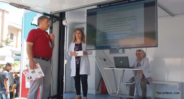 Afşin Toplum Sağlığı Merkezi (TSM), vatandaşları Kırım Kongo Kanamalı Ateşi Hastalığı'na (KKKA) karşı bilinçlendirdi. Afşin Toplum Sağlığı Merkezi, Sağlık Bakanlığı tarafından çeşitli hastalıklar hakkında farkındalık oluşturmak ve topluma sağlıklı yaşam kültürü kazandırmak amacıyla hizmet veren ve ülke genelinde dağıtımı yapılan gezici sağlıklı yaşam aracında, Afşin'deki vatandaşlara, KKKA hastalığı hakkında bilgi verildi. Atatürk Caddesi'nde, Ulu Camii yanında sağlıklı yaşam stant açan Afşin TSM yetkilileri, vatandaşlara, kene ısırmalarının hafife alınmaması ve tedbirin elden bırakılmaması konusunda vatandaşları uyardı. KKKA hastalığının hayvanlarda belirtisiz seyrederken insanlarda öldürücü olabildiğini söyleyen tıbbi teknolog İsmail Kızılay, hayvan barınaklarına, kırsal alanlara, orman kenarı ve tarım arazileri giden vatandaşların mümkün olduğunca vücutta açık kısım kalmamasına özen göstermelerini gerektiğini söyledi. Riskli alanlardan dönüldükten sonra vücutta kene kontrolü yapılması gerektiğini hatırlatan Kızılay, şunları kaydetti: "Kene kontrolünde özellikle vücudumuzun, diz arkası, koltuk altı, kulak arkası, ense, saç dipleri ve kasıkların kontrol edilmesi gerekir. Eğer bir kene vücudumuza tutunmuşsa, çıplak elle dokunmadan, en yakın sağlık kuruluşuna gidin. KKKA hastalığının belirtileri, halsizlik, iştahsızlık, ateş, baş ağrısı, bulantı, kusma ve ishaldir. Kene tutunması sonrasında bu belirtilerin herhangi birini görenler, zaman kaybetmeden en yakın sağlık kuruluşuna gitmelidir."