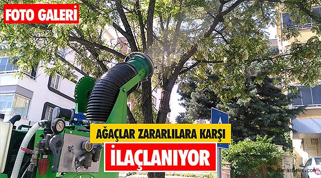 Akasya ağaçları ile birlikte diğer ağaçlarda da görülen yaprak biti başta olmak üzere diğer zararlılara karşı ekipler ağaçlarda ilaçlama çalışmalarını sürdürüyor.