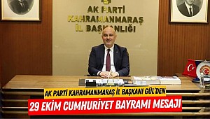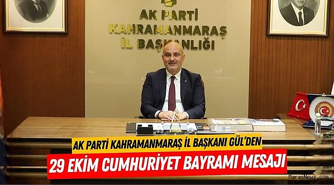 AK Parti Kahramanmaraş İl Başkanı M.Burak Gül, 29 Ekim Cumhuriyet Bayramı dolayısıyla yayımladığı kutlama mesajında: Cumhuriyet'in 102.Kuruluş yıl dönümünü büyük bir gurur ve heyecanla karşıladıklarını belirtti; özellikle birlik, beraberlik ve milli iradeye vurgu yaptı.