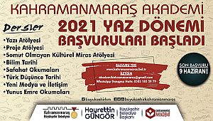 Kahramanmaraş Büyükşehir Belediyesi tarafından düzenlenen Kahramanmaraş Akademi’de yaz dönemi başlıyor. Akademi eğitimleri kapsamında uzman eğitmenler tarafından toplamda 8 branşta ücretsiz eğitim verilecek. Yedi Güzel Adam Edebiyat Müzesi’nde verilecek eğitimler arasında; Yazı Atölyesi, Proje Atölyesi, Yeni Medya ve İletişim, Bilim Tarihi, Safahat Okumaları, Somut Olmayan Kültürel Miras Atölyesi, Türk Düşünce Tarihi ve Yunus Emre Okumaları branşları yer alıyor. Bugün itibariyle başlayan ve bir hafta boyunca devam edecek ön başvuruların son tarihi ise 9 Haziran Çarşamba günü olarak belirlendi. Eğitim başvuruları ise https://forms.gle/n9wss4XK1sZU59XdA adresindeki formun doldurulmasıyla çevrimiçi olarak alınıyor.