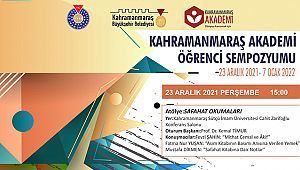 Kahramanmaraş Büyükşehir Belediyesi’nin düzenlediği “Kahramanmaraş Akademi” güz dönemini sempozyum etkinliğiyle tamamlıyor. Sütçü İmam Üniversitesi’nin katkılarıyla 23 Aralık Perşembe günü (bugün) başlayacak Öğrenci Sempozyumu, 7 Ocak Cuma gününe kadar devam edecek. Safahat Okumaları, Sosyolojinin Temel Kavramları, Varoluşsal Düşünce Atölyesi, Yunus Emre Okumaları, Yeni Medya ve İletişim, Dergi, Bilim Tarihi, Türk Düşünce Tarihi, Roman, Öykü, Yazı, Düşünce ile Sinema ve Felsefe başta olmak üzere toplamda 13 atölyede eğitim alan 44 kursiyer eğitmenleri tarafından başkanlık edilen oturumlarda bildirilerini sunacak.