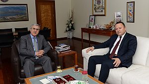 Rektörlük makamında gerçekleştirilen ziyarette Rektör Can’ı yeni görevi
