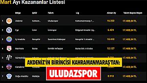 takımları belli oldu. Kahramanmaraş temsilcisi Uludazspor, 16.222 oy alarak Akdeniz Bölgesi'nin