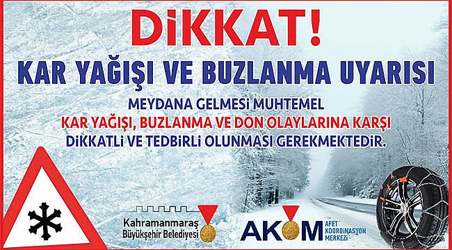 merkezinde meydana gelebilecek yoğun kar yağışı, buzlanma ve don olaylarına
