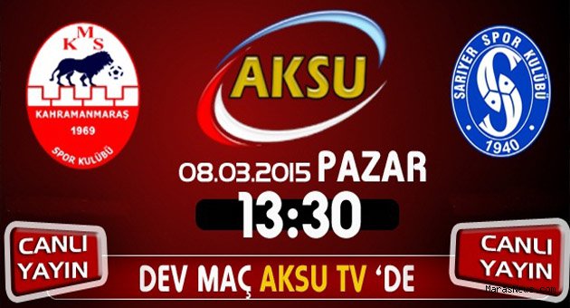 Öte yandan gelen bilgiler doğrultusunda; Aksu Tv Kahramanmaraşspor'un Sarıyer Maçını Canlı Yayınlaması Üzerine Kahramanmaraş Büyükşehir Belediyesi Taraftarın Maçı Hep Birlikte İzlemesi İçin Necip Fazıl Kültür Merkezi Önü Ve 12 Şubat Stadının yanındaki Boş Arsaya Dev Ekran TV Koyacak.