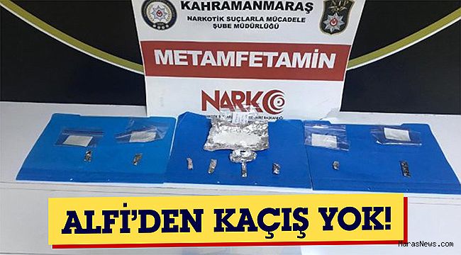 Köpeği Alfi ile yapılan aramada 1 paket 1. 09 gr Met-Amfetamin Maddesi ele
