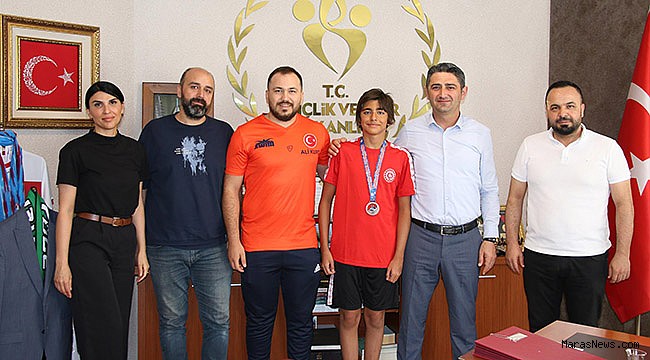 Bu kategoride ilimize ilk madalyayı kazandıran Ertekin ve Antrenörü Ali Kurt ile Sporcumuzun Anne Babası ve Onikişubat Gençlik ve Spor İlçe Müdürü Kadir Gemci Gençlik ve Spor İl Müdürü Cemil Boz’u ziyaret ettiler.