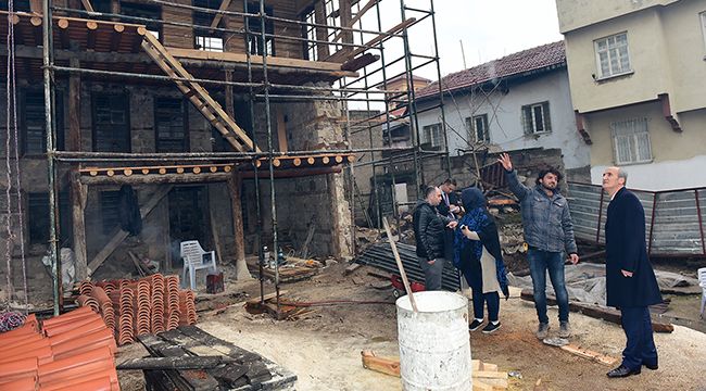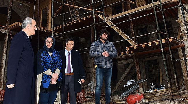 Üdürgücü konağında devam eden restorasyon çalışmalarını inceleyen Dulkadiroğlu