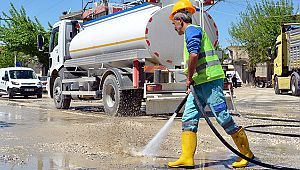 çalışmalarına devam edilen bölgelerde yıkama çalışması yaparak hem görüntü