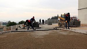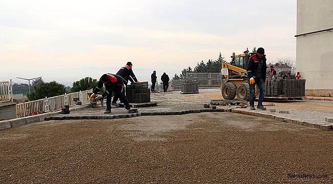 İlçesi Anadolu Lisesi bahçesinde başlattıkları bordür ve parke döşeme işleri