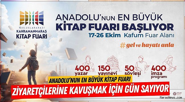 Büyükşehir Belediyesinden yapılan açıklamada, “Şiir ve edebiyatın başkentinde kültür ve sanatın kalbi yeniden Kahramanmaraş’ta atacak. 10’uncu Uluslararası Kahramanmaraş Kitap Fuarı ile binlerce eseri, yüzlerce yazarı ve on binlerce ziyaretçiyi bir araya getireceğiz. 17 – 26 Ekim tarihleri arasında KAFUM’da düzenlenecek fuarımıza tüm vatandaşlarımızı davet ediyoruz” ifadelerine yer verildi.