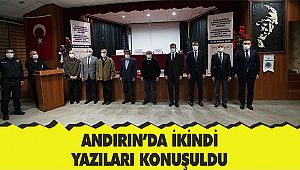 Kahramanmaraş Büyükşehir Belediyesi’nin düzenlediği 1. Uluslararası Kahramanmaraş Şiir ve Edebiyat Günleri etkinlikleri ilçelerde de devam ediyor. Bu kapsamda Andırın’da, Yazarlar Atıf Bedir, Duran Boz, Yunus Develi ve Mevlana İdris’in katılımıyla İkindi Yazıları Özel Oturumu gerçekleştirildi. Şehit Yasin Höbek Ortaokulu konferans salonundaki programa Büyükşehir Belediyesi Başkan Vekili Hanifi Toptaş, Andırın Belediye Başkanı Ahmet Doğan, Genel Sekreter Dr. Rüstem Keleş, İlçe Kaymakamı İbrahim Gümüş, Kültür Turizm ve Spor Dairesi Başkanı Duran Doğan ile sanatseverler katıldı. Pandemiyle alakalı tüm tedbirlerin alındığı özel oturumda, Andırın Postası, Esra Yazıları gibi edebi eserlerin, “İkindi Yazıları” Dergisi’ne giden serüveni incelendi.