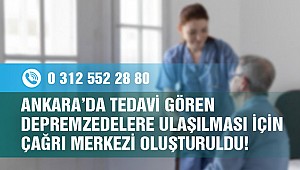 6 Şubat depremlerinde kurtarılan depremzedeler çeşitli illerdeki hastanelerde tedavi altına alınmıştı. Birçok depremzede hastalarının hangi hastanede tedavi altına alındığını merak ediyordu. Bu sorunun önüne geçmek ve depremzedeleri bilgilendirmek için Ankara İl Sağlık Müdürlüğü bünyesinde Ankara Sağlık İletişim Merkezi oluşturuldu. Bu merkezde 0312 552 28 80 numarasını arayanlara; deprem bölgesinden Ankara’ya sevk edilen hastaların hangi ilden geldiği, hangi hastanenin hangi servisine yatırıldığına dair bilgi veriliyor. çağrı merkezi, 24 saat hizmet veriyor.
