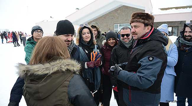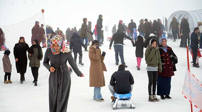 Güvenç’le Yedi Kuyular Kayak Merkezini ziyarete gelen vatandaşlarla geçiren