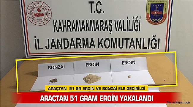 bulunan 5 şüpheli şahıstan 3’ünün üzerinde toplam 51 gr eroin ile 2 gr bonzai