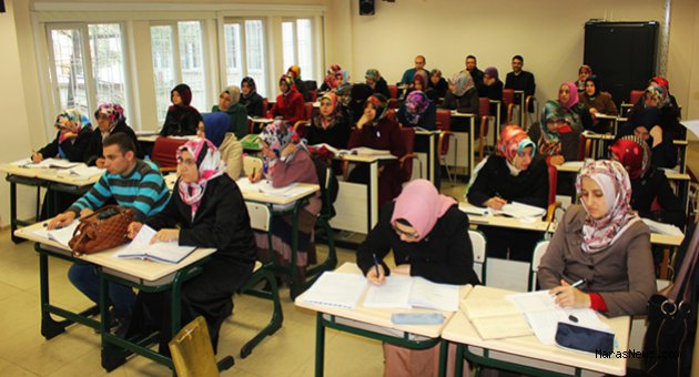 Üç yıldır Arapça kursu veren İlahiyat ve Edebiyat mezunu Hacı PARLAK, ilk iki yıl kursa devam eden öğrencilerin İlahiyat Önlisans’tan mezun olduklarını, bu öğretim yılında ise İlahiyat Önlisans’a devam eden birinci sınıf öğrencilerinden 45 öğrencinin kursa devam ettiğini, kursun Cumartesi ve Pazar günleri öğleye kadar yapıldığını belirtti. Kurs hocası, kurs verilirken, İlalhiyat Önlisans sınavlarında çıkmış sorular göz önünde bulundurularak dershane sistemiyle kurs verildiğini, akıllı tahta kullanıldığını, işlenen konularla ilgili Arapça soru bankası kitaplarından test çözdüklerini, geçmiş yıllarda çıkmış sorular üzerinde durduklarını; bu nedenle de kursa devam eden öğrencilerin sınavlarda başarılı olduklarını söyledi.