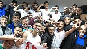 Maç sonu büyük sevinç yaşayan Kahramanmaraşsporlu futbolcular soyunma odasında galibiyet pozu da vermeyi ihmal etmedi.