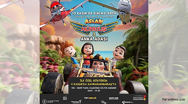 Sosyal belediyecilik hizmetleri çerçevesinde farklı yaş gruplarına yönelik kültür sanat faaliyetlerini artırarak sürdüren Kahramanmaraş Büyükşehir Belediyesi, çocuklara yönelik çok özel bir etkinlik gerçekleştirecek. Kültür ve Turizm Bakanlığı iş birliğiyle TRT lisanslı ‘Aslan Hürkuş 3: Anka Adası’ adlı sinema filminin ilk özel gösterimi Kahramanmaraş’ta çocuklarla buluşacak. Hürkuş, Aslan ve arkadaşlarının maceralarını konu alan filmin üçüncü serisinin ilk özel gösterimi 4 Kasım Cumartesi günü saat 19.00’da ücretsiz olarak Necip Fazıl Kısakürek Kültür Merkezi’nde minikler için beyaz perdeye yansıyacak. Büyükşehir Belediyesinden yapılan açıklamada, “Yerli ve milli teknolojimiz Anka’nın tanıtıldığı sinema filmine tüm çocuklar davetlidir” ifadelerine yer verildi.