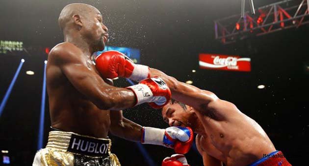 Dünya Boks Birliği (WBA) ve Dünya Boks Konseyi (WBC) yarı orta sıklet şampiyonu Mayweather ile Dünya Boks Organizasyonu (WBO) yarı orta sıklet şampiyonu Pacquiao arasındaki maç, ABD'nin Las Vegas kentindeki MGM Grand Hotel'de gerçekleştirildi.