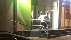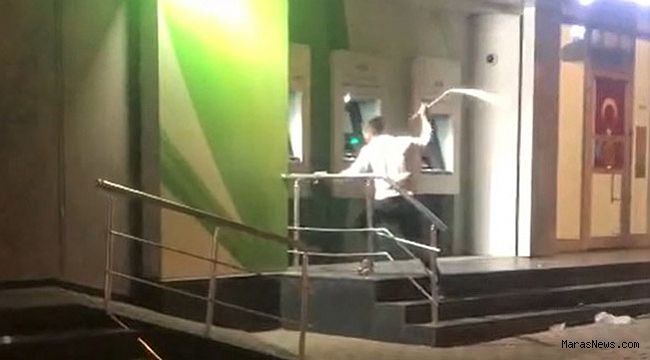 Edinilen bilgiye göre, Onikişubat İlçesi Şazi Bey Mahallesi Azarbeycan Bulvarı Kısakürek Sitesi’nde yer alan özel bir bankanın para çekme makinasına kartını kaptıran H. Gümüş (23), eline aldığı demir parçalarıyla ATM’lere saldırdı. Bir süre ATM’ye saldırın genç, banka şubesi önünde çöp kovasını yerinden söktü. Çevredeki vatandaşların ihbarıyla bölgeye gelen polis ekiplerince gözaltına alınan genç, yaptıkları cep telefonu kamerasıyla kaydedildi.